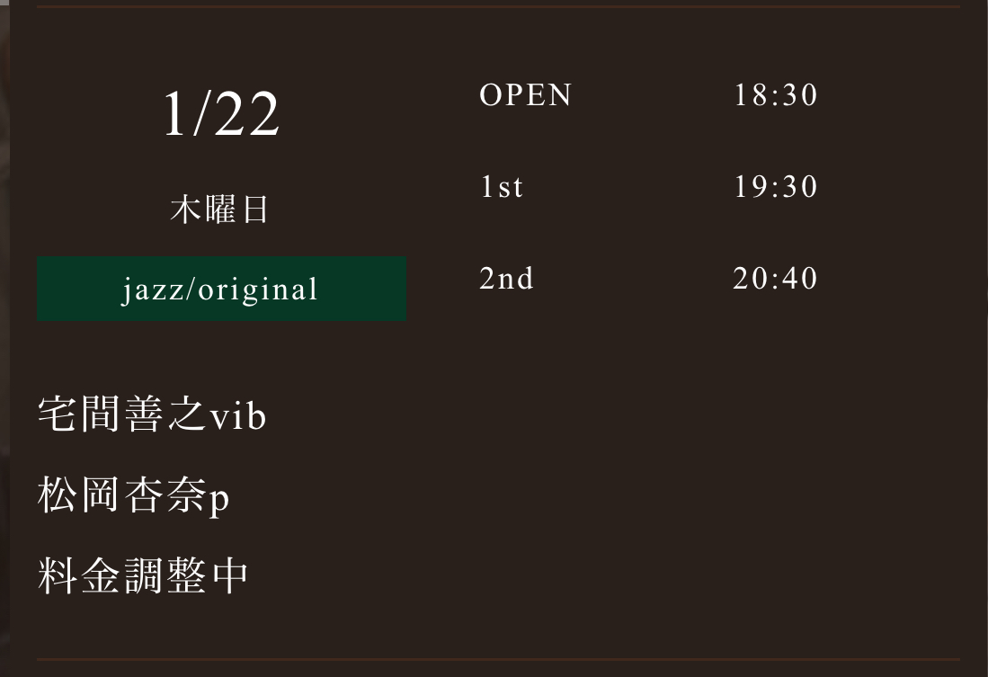 15:30 Open16:00〜18:15(2ステージ) @飯能カフェクロック